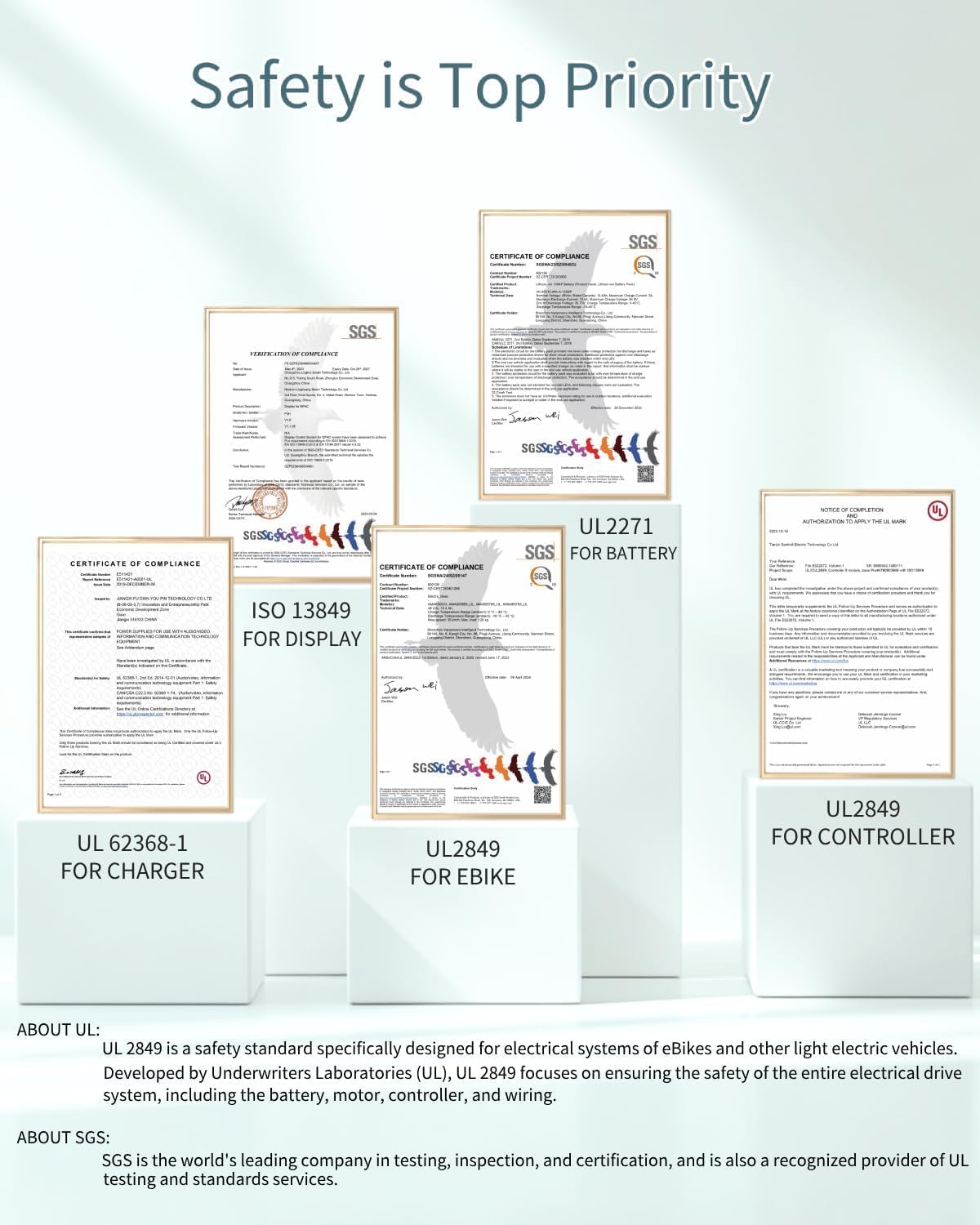 ✅Professional Certification: Our commitment to safety has been recognized by SGS through UL2849 Compliant (for the whole electric bike) and UL2271 Compliant