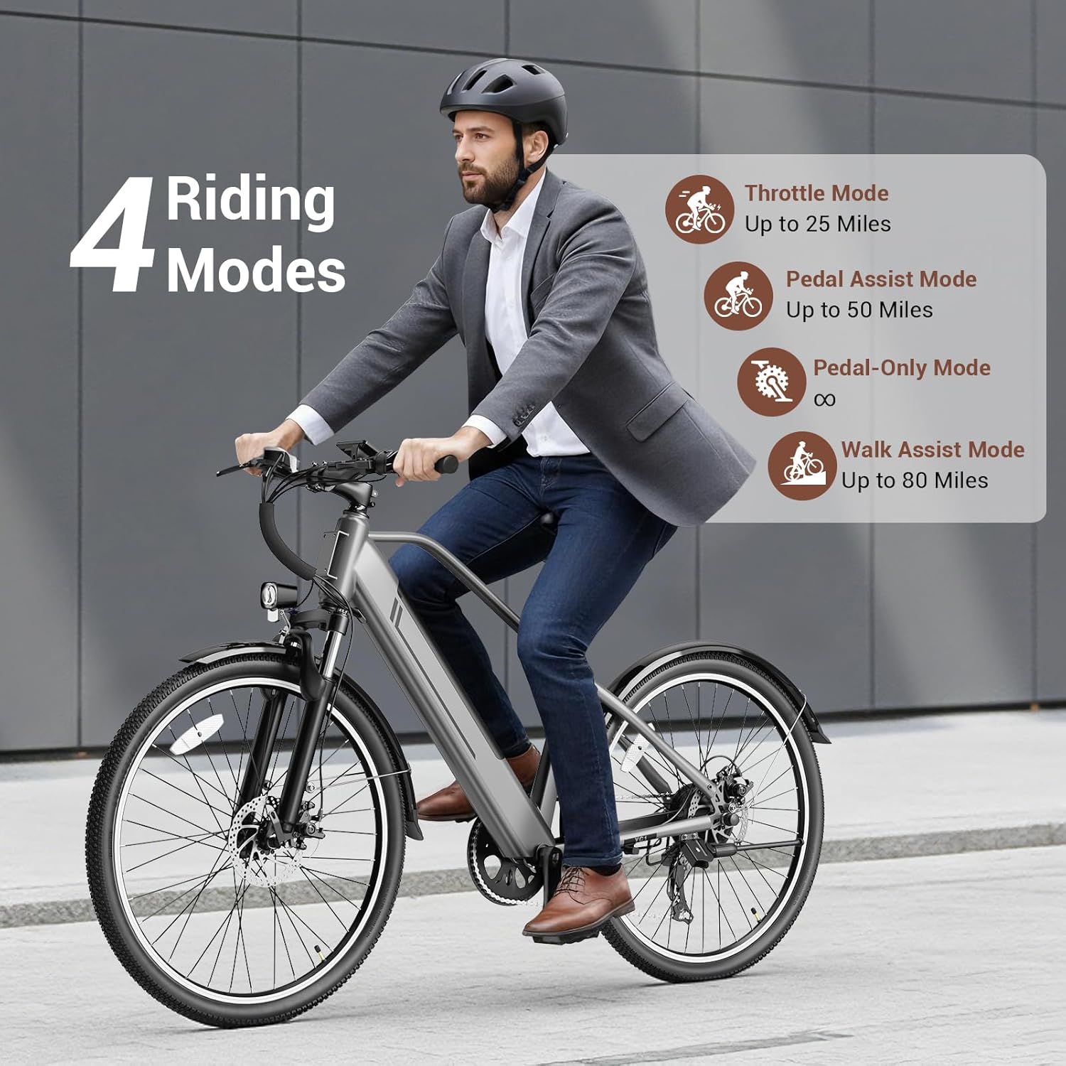 【ADULT E-BIKE FLEXIBLE 3+1 RIDING MODES】Experience a variety of riding styles based on your physical strength, terrain, and goals. Use Pure Electric Mode (Throttle) for effortless cruising without pedaling; enable Pedal Assist Mode to extend range and make uphill climbs feel like flat terrain; or choose Classic Bicycle Mode to pedal without motor assistance—saving battery power while getting a workout.